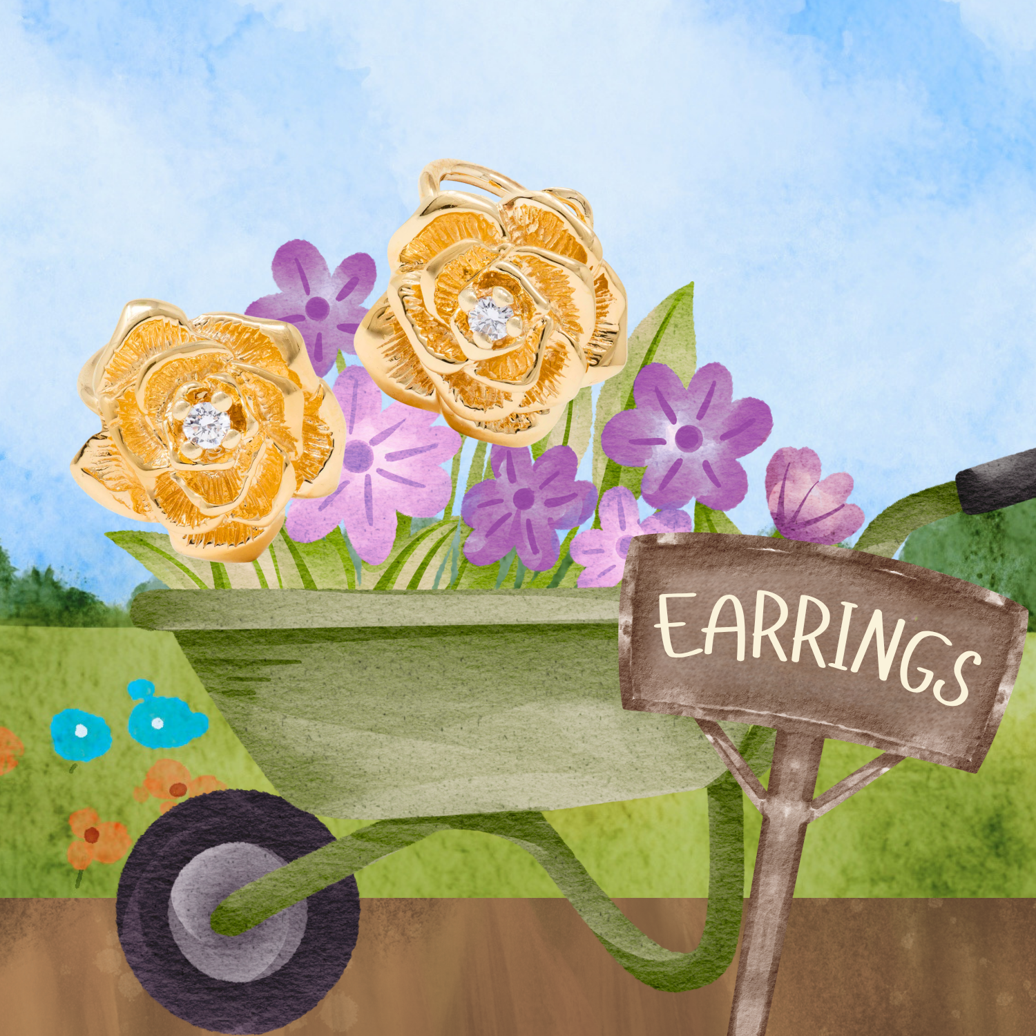 Tiffany & Co. 1990's Diamond 14 Karat Yellow Gold Vintage Rose Ear-Clip Earrings