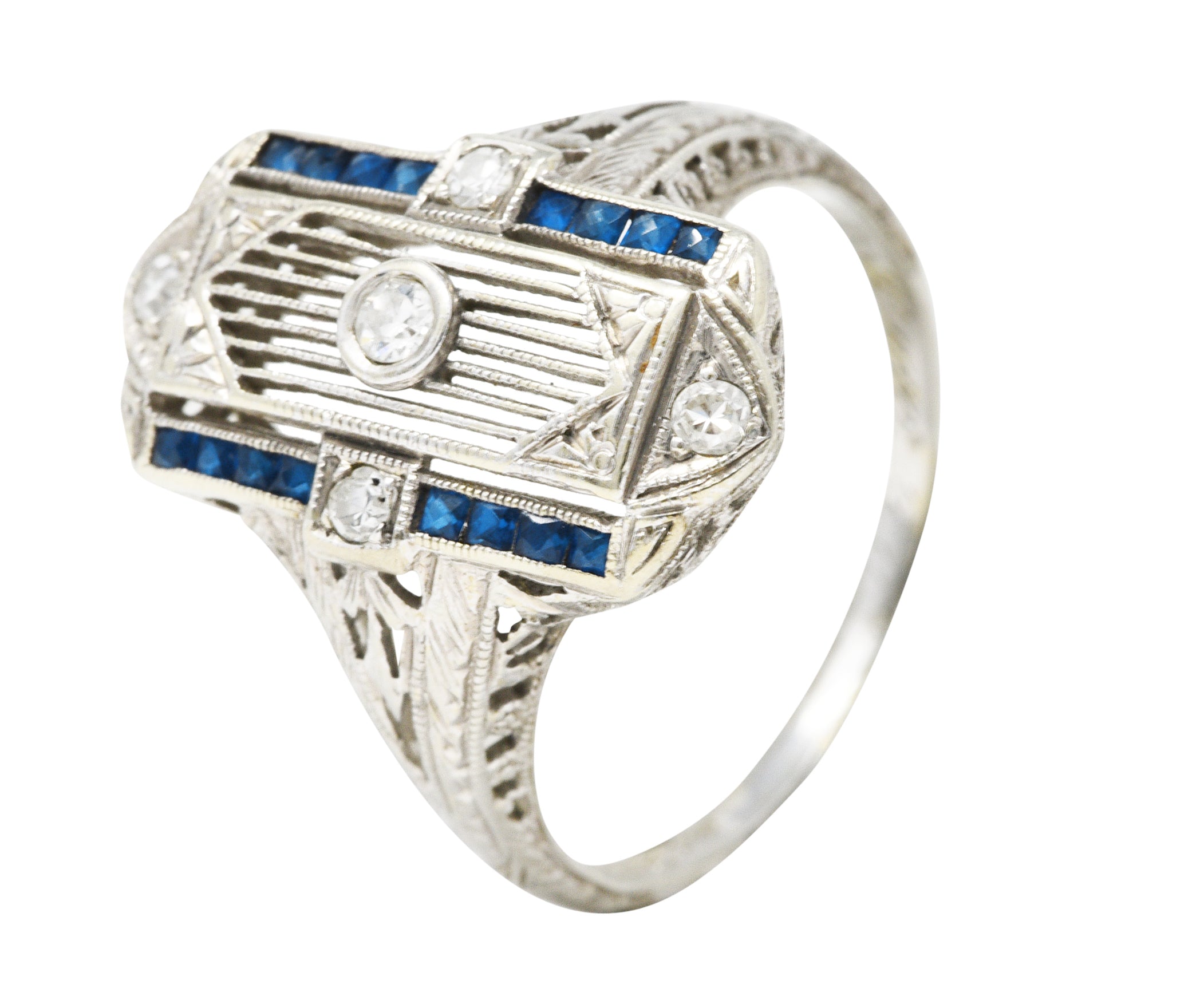 1928 Art Deco Sapphire Diamond 18 Karat White Gold Dinner Ring