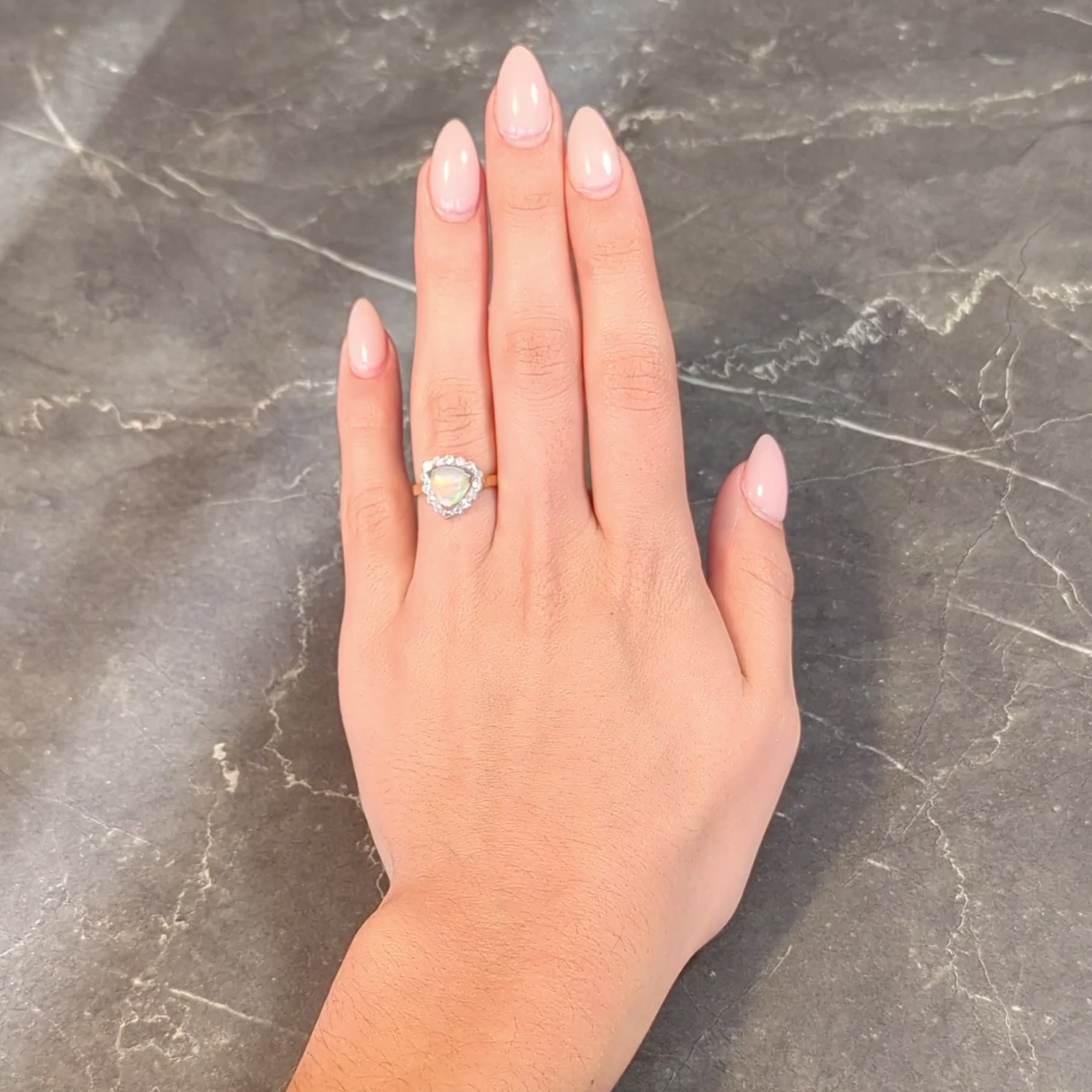 1980s Opal Diamond 18 Karat Yellow White Gold Triangular Vintage Halo Ring
