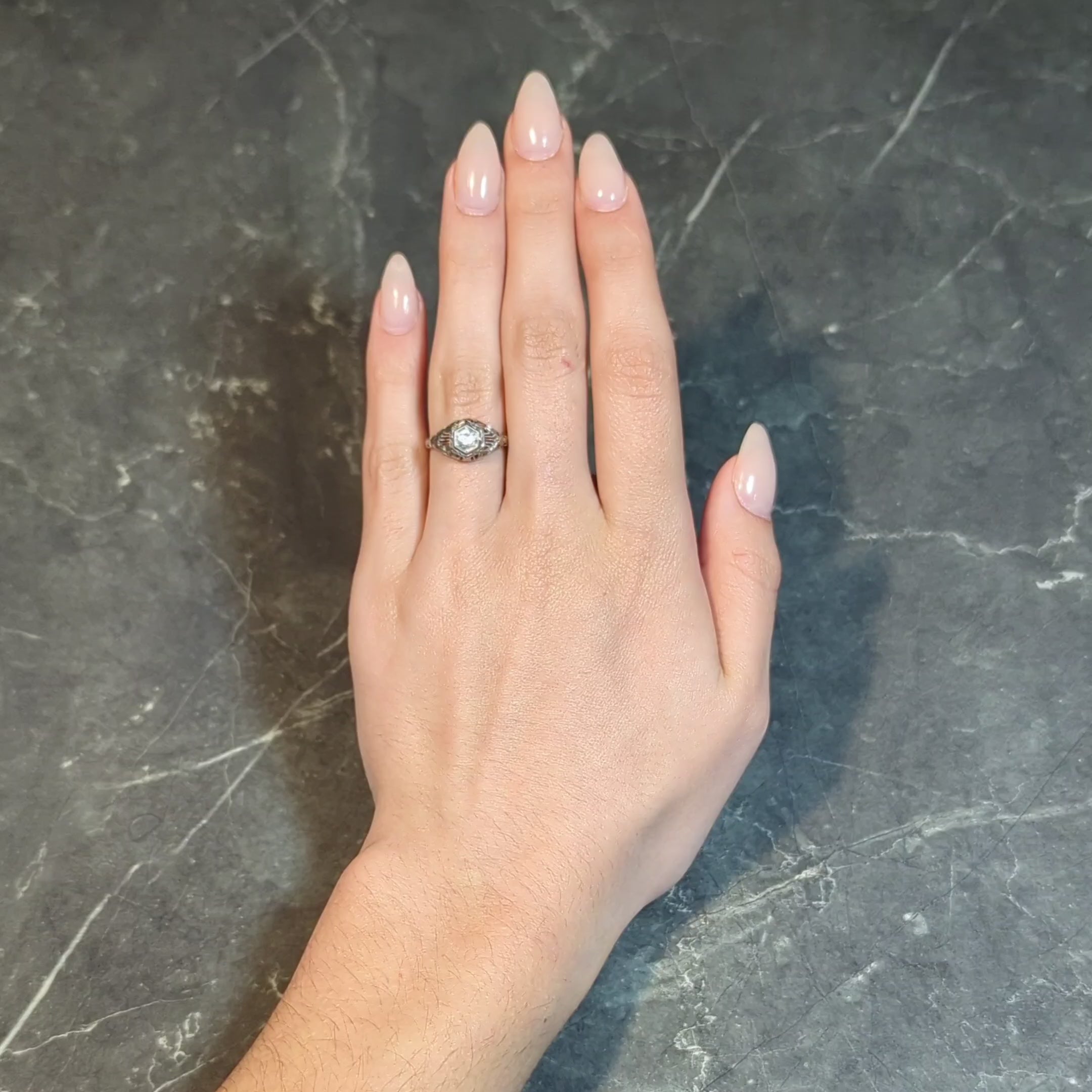 Art Deco 0.33 CTW Diamond 18 Karat White Gold Wheat Hexagonal Engagement Ring