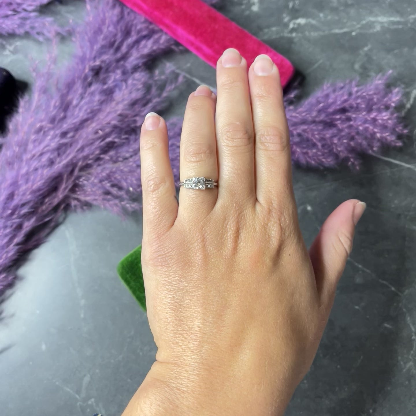 - Featuring an old European cut diamond weighing approximately 0.45 carat - I color with VS2 clarity