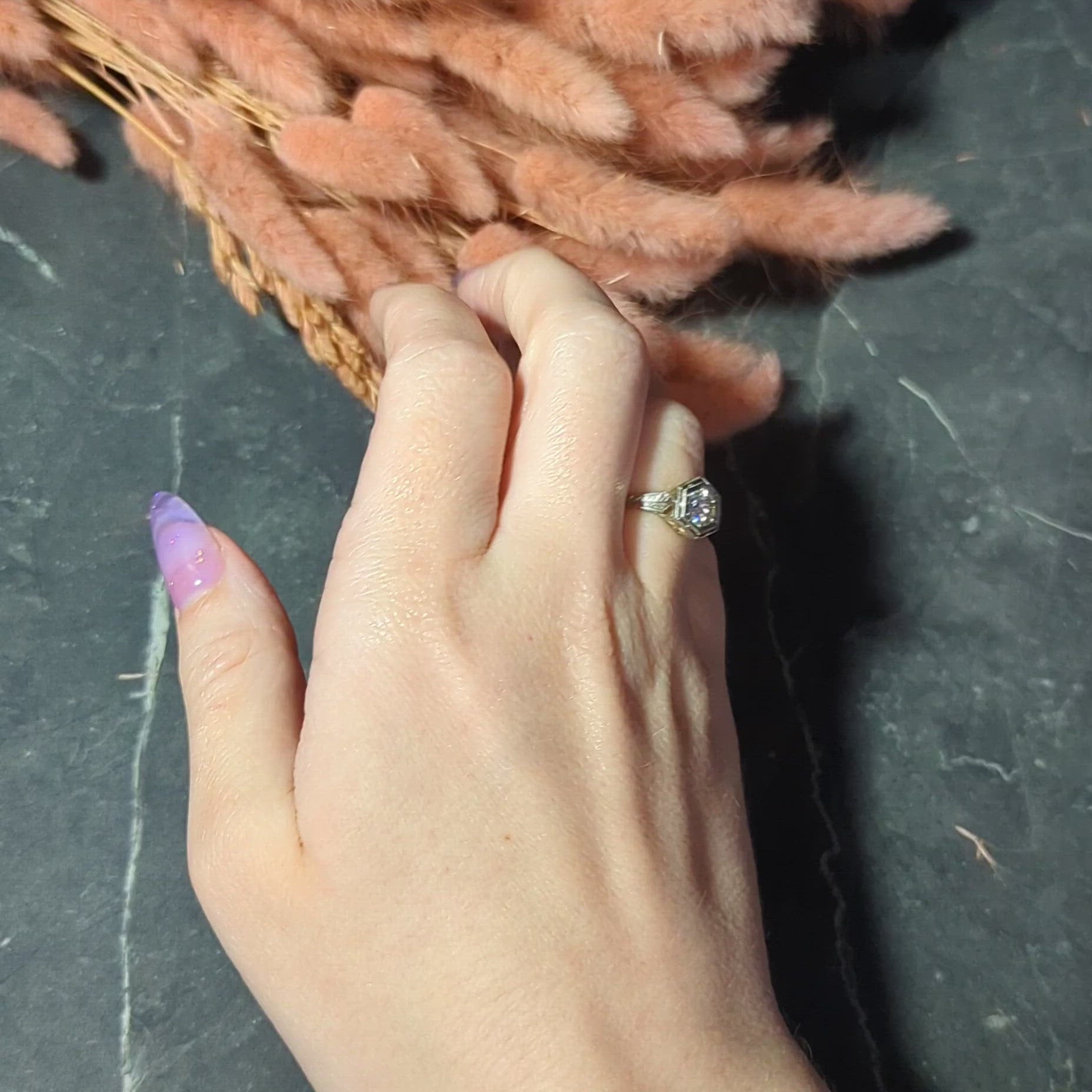 Art Deco 0.74 CTW Old European Cut Diamond 20 Karat White Gold Hexagonal Engagement Ring