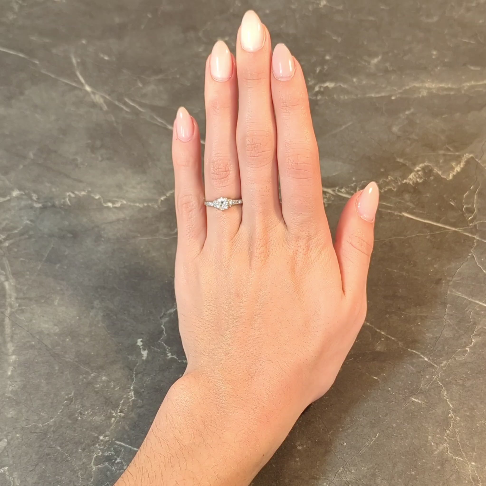 - Centering a transitional cut diamond weighing approximately 0.60 carat total - G color with VS2 clarity