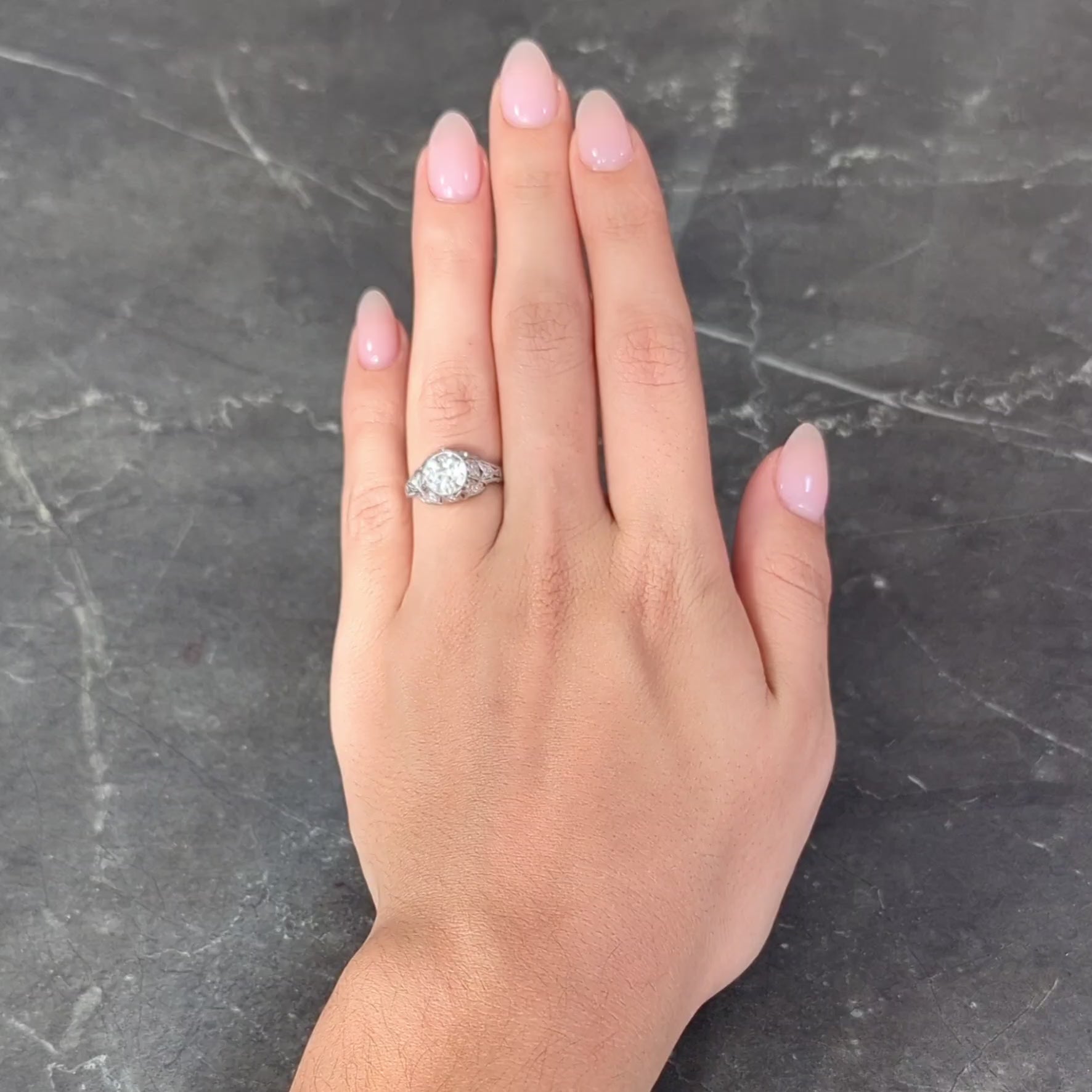 Art Deco 1.72 CTW Old European Cut Diamond Platinum Tulip Vintage Engagement Ring