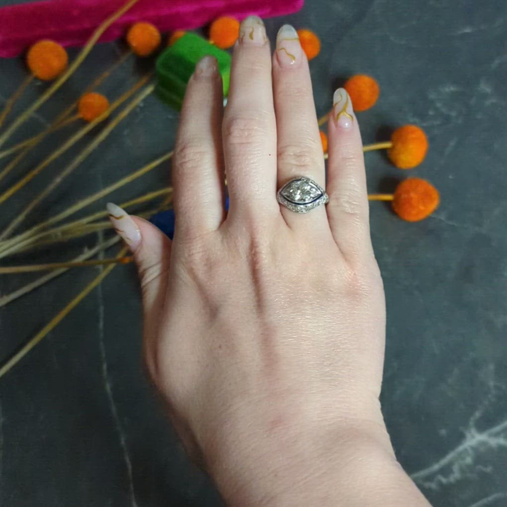 - Featuring an old European cut center weighing approximately 1.35 carat - J/K color with SI1 clarity