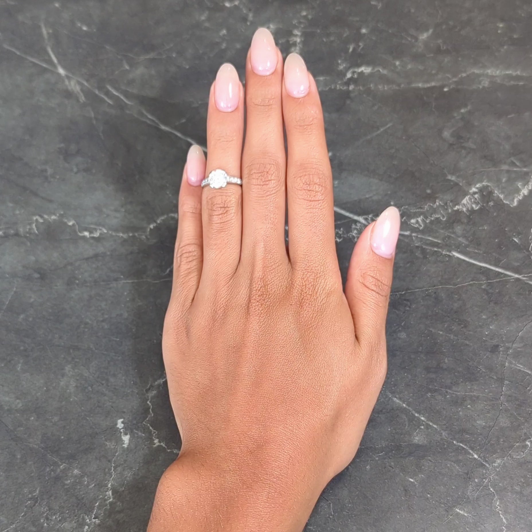 - Flanked by rows of single cut diamonds bead set in shoulders