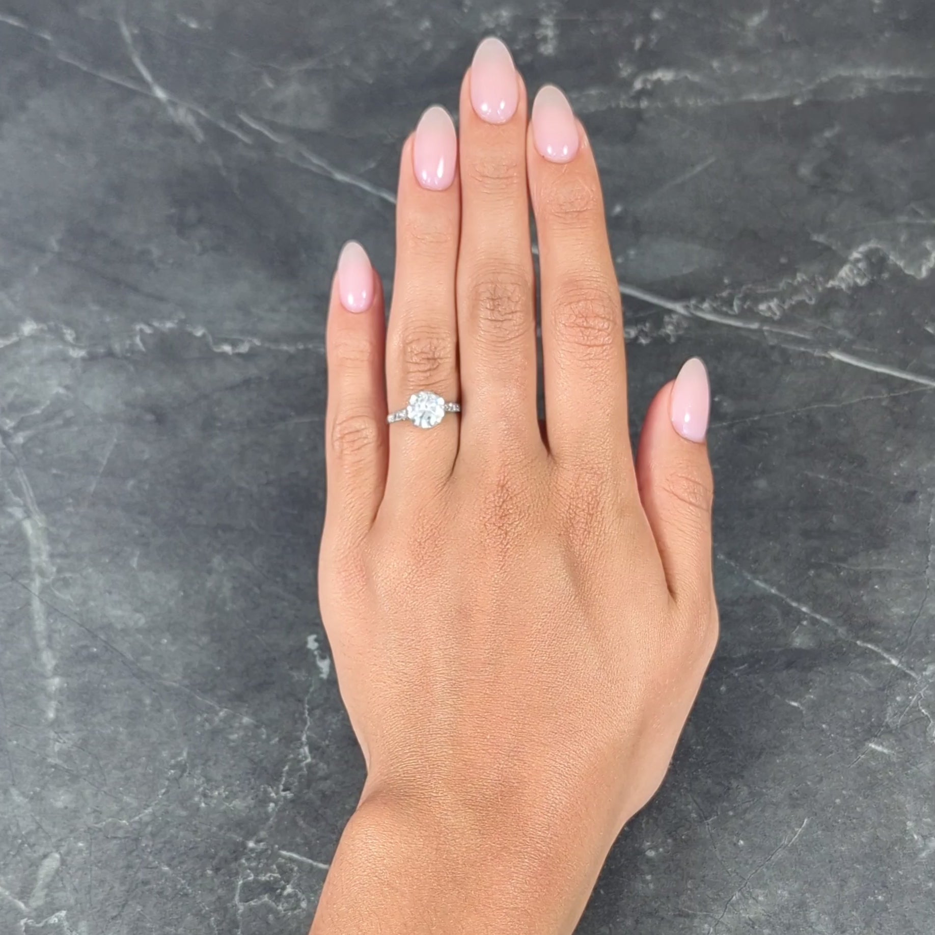 - Centering an transitional cut diamond weighing approximately 1.97 carats total - L color with S1 clarity
