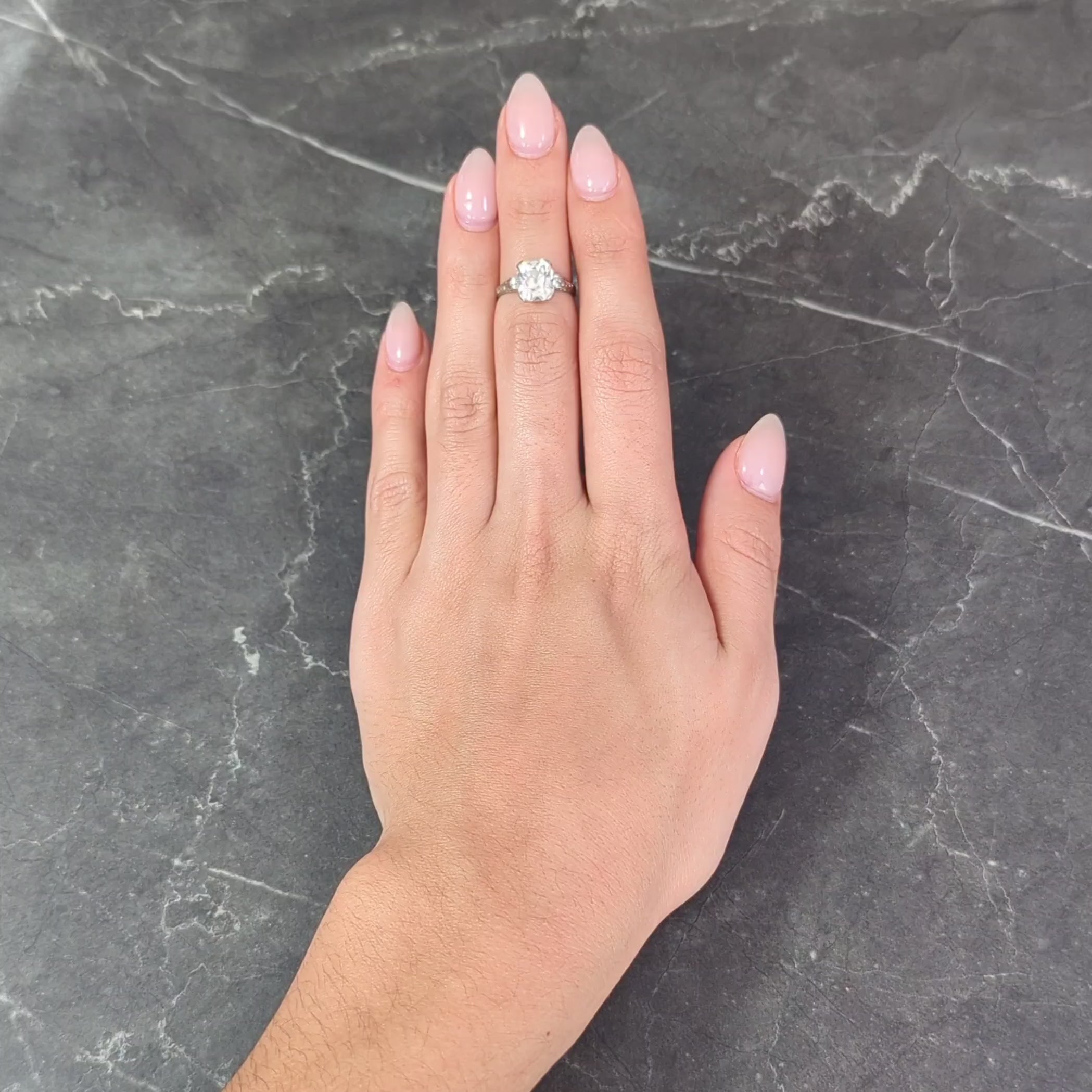 Art Deco 2.69 CTW Old Mine Cut 18 Karat White Gold Volute Antique Engagement Ring GIA