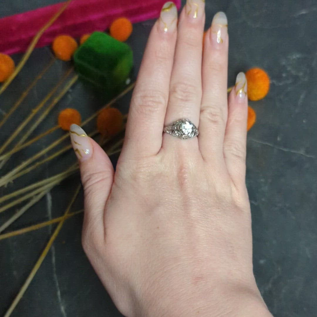 - Featuring an old European cut diamond weighing 0.98 carat - M color with VS1 clarity