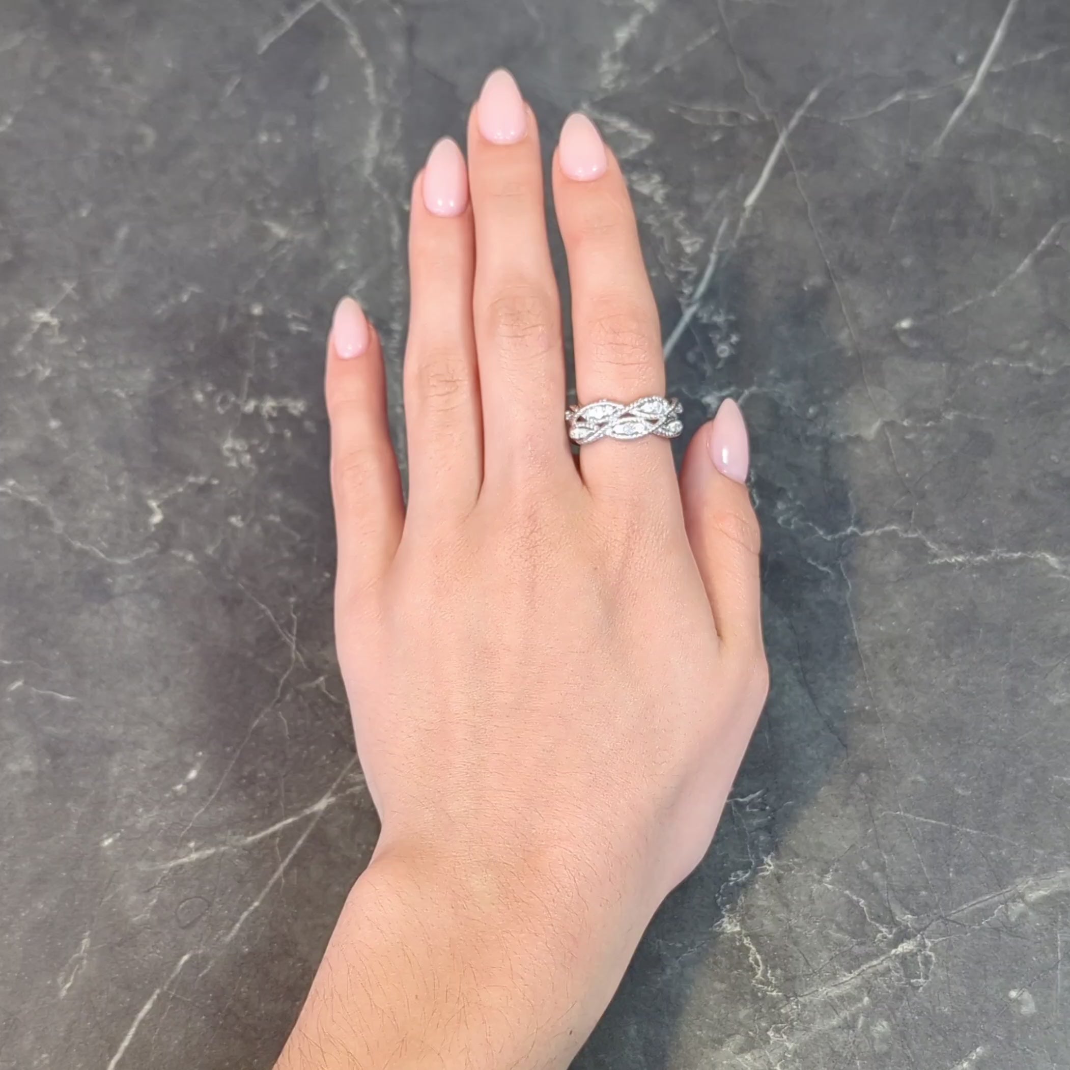 - Designed as a dimensionally woven and overlapping rope motif forming marquise-shaped pattern