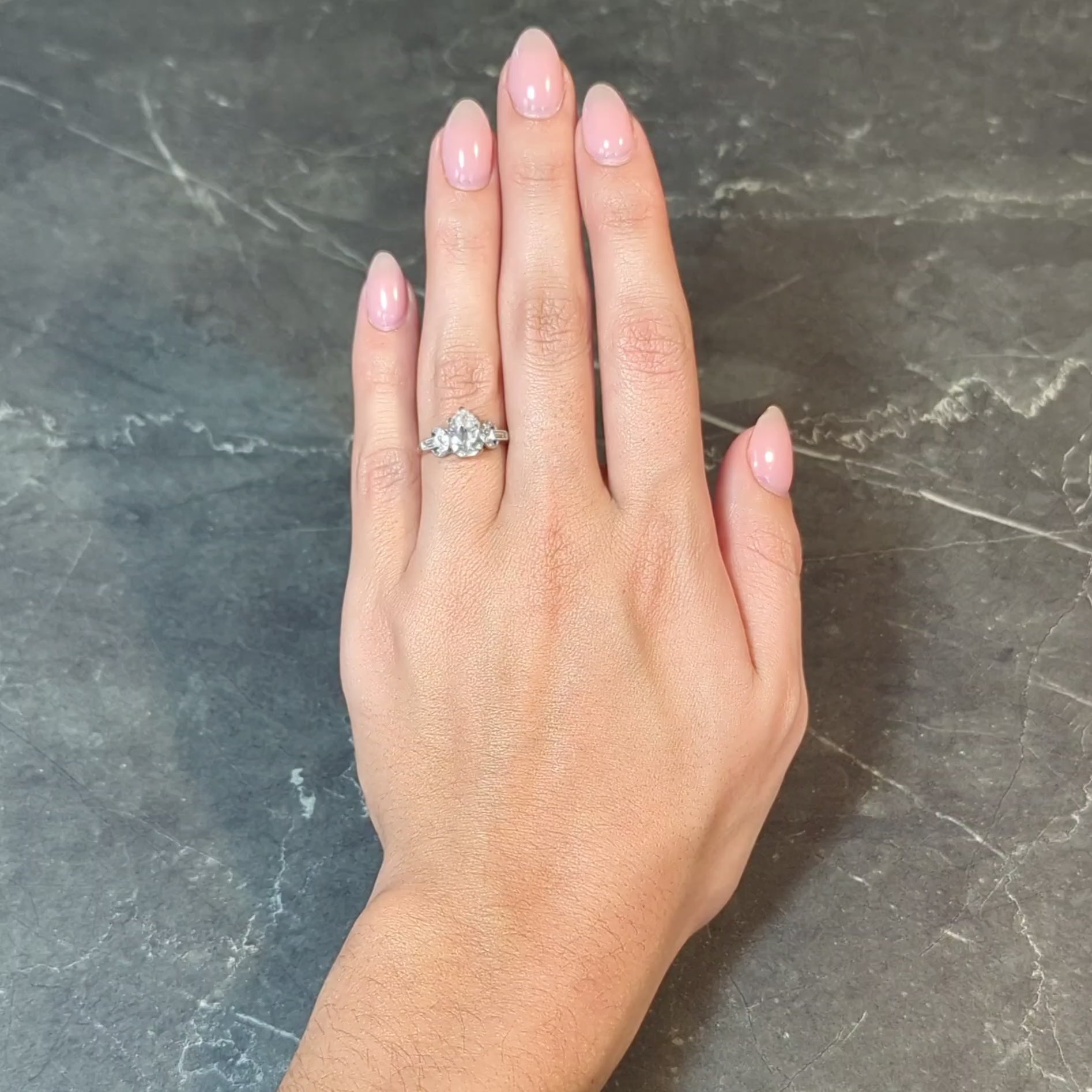 Edwardian 2.22 CTW Pear Cut Diamond Platinum 14 Karat Gold Crescent Antique Engagement Ring GIA