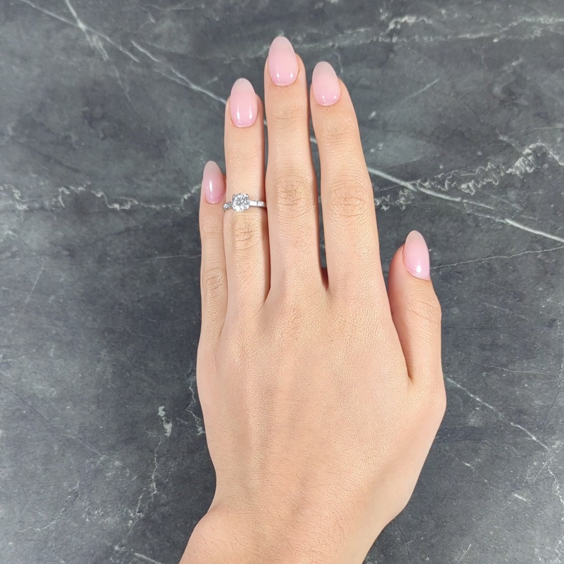 - Centering a transitional cut diamond weighing approximately 0.97 carat total - H color with SI1 clarity