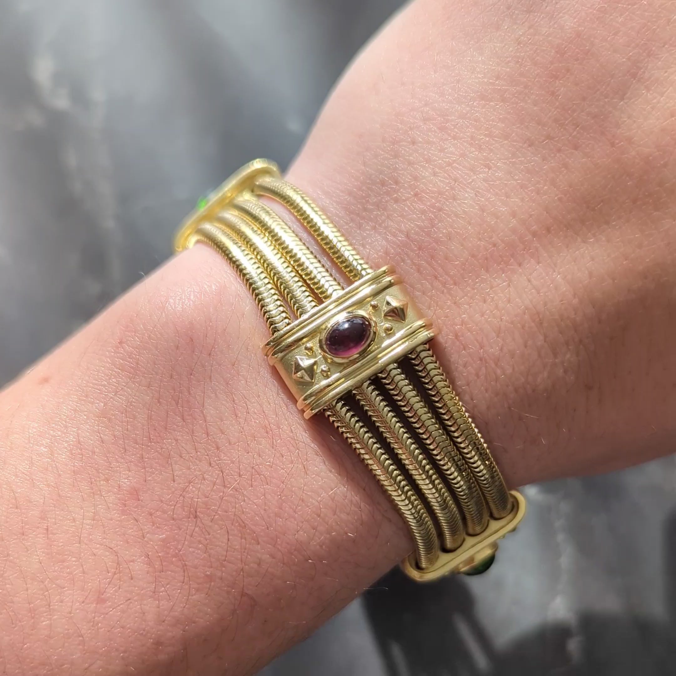 SeidenGang 1990's Tourmaline 18 Karat Yellow Gold Multi-Strand Vintage Bracelet
