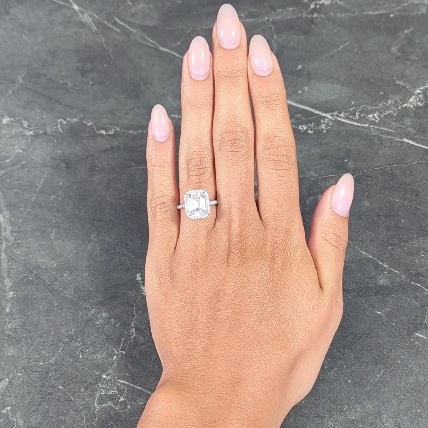 Tiffany & Co. 5.35 CTW Emerald Cut Diamond Platinum Soleste Halo Engagement Ring