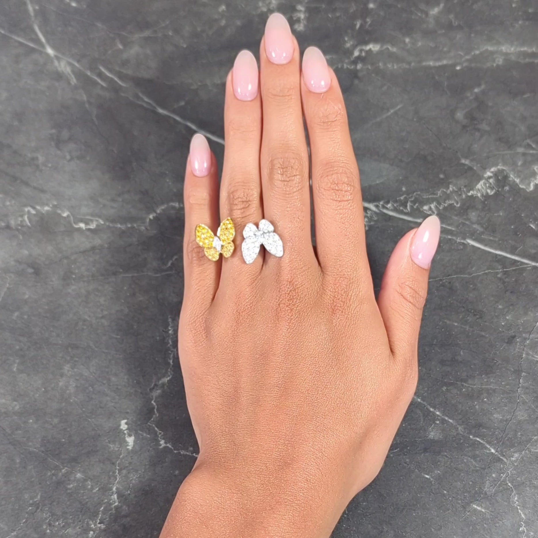 Van Cleef & Arpels Yellow Sapphire Diamond 18 Karat Gold Two Butterfly Between Finger Ring