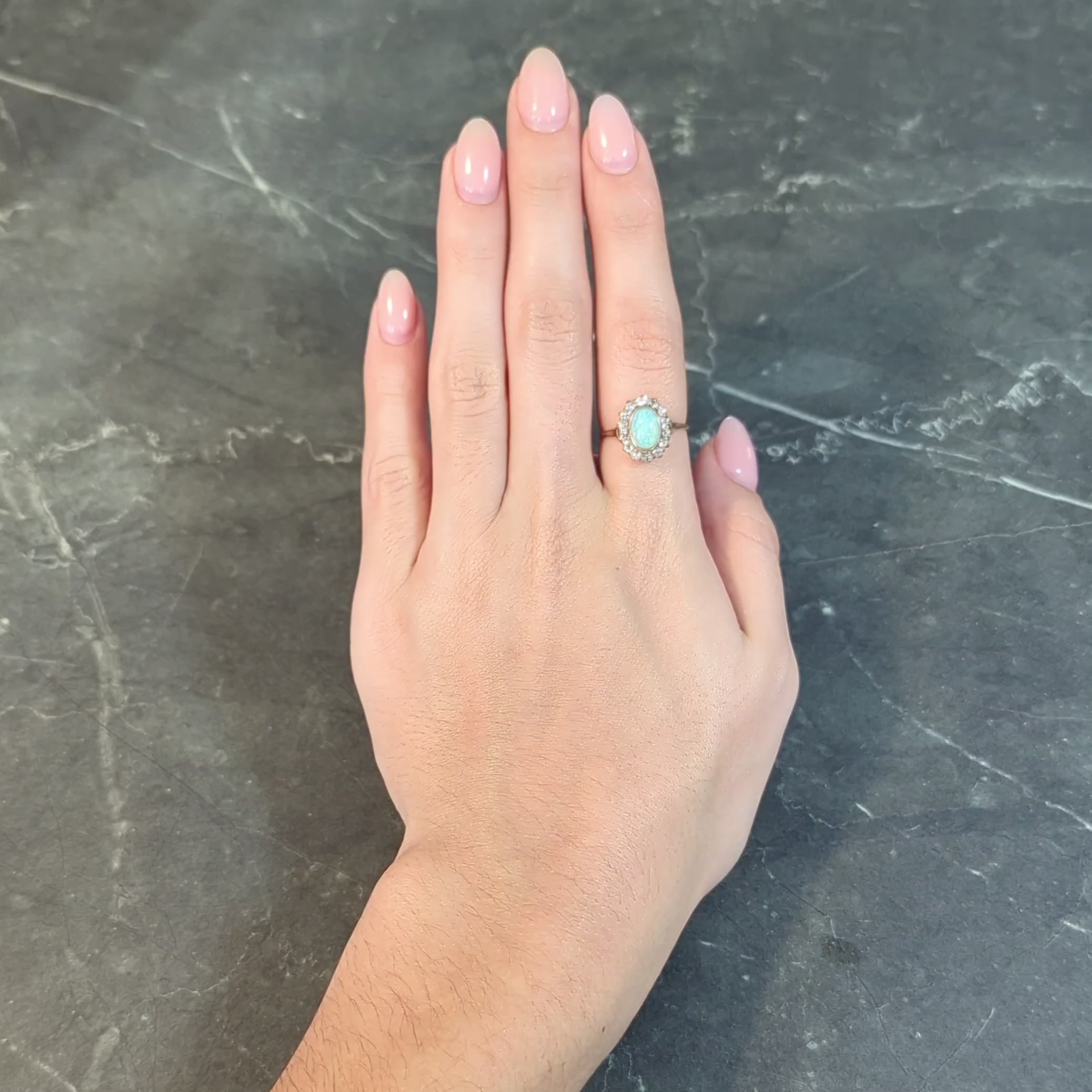 Victorian 0.86 CTW Opal Cabochon Diamond 14 Karat Yellow Gold Antique Halo Ring