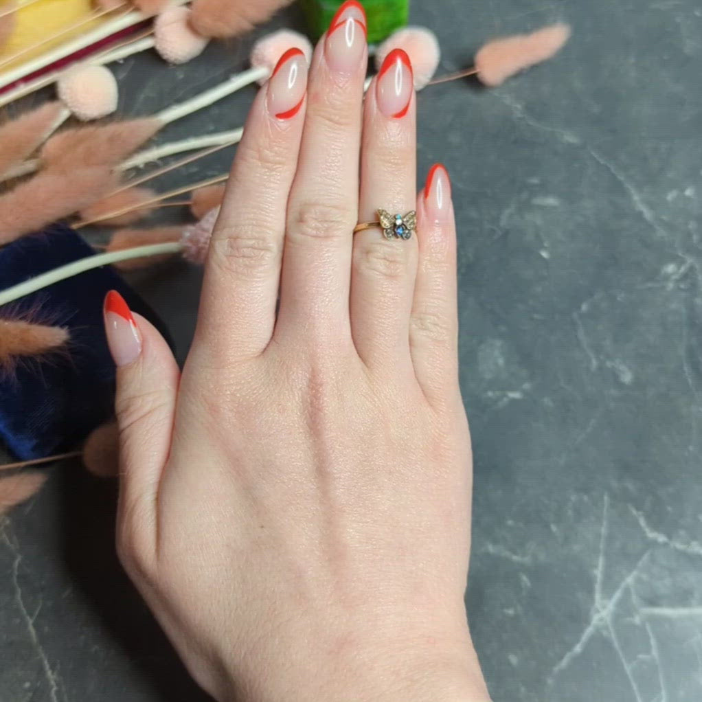 - Petite ring features a butterfly motif with a turquoise cabochon head